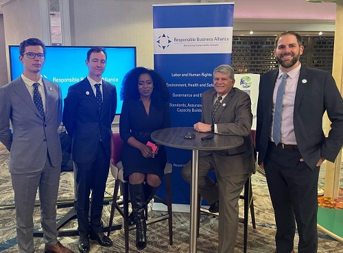 The RBA team has arrived at COP26 in Glasgow, Scotland and is ready for climate action! Join us, the Department for Environment, Food and Rural Affairs (DEFRA UK) and COP26 E-Alliance & Partners for the Tech for Climate Action event taking place Nov. 1-5: e-alliancecop26.com. Pictured below, left to right: Bart Devos, RBA European Director; Carlos Busquets, RBA Senior Director of Public Policy; Mattie Yeta, Ph.D., Head of Sustainability - Group Strategy for DEFRA UK; Rob Lederer, RBA CEO; and Daniel Reid, RBA Director of Environment and Circularity.